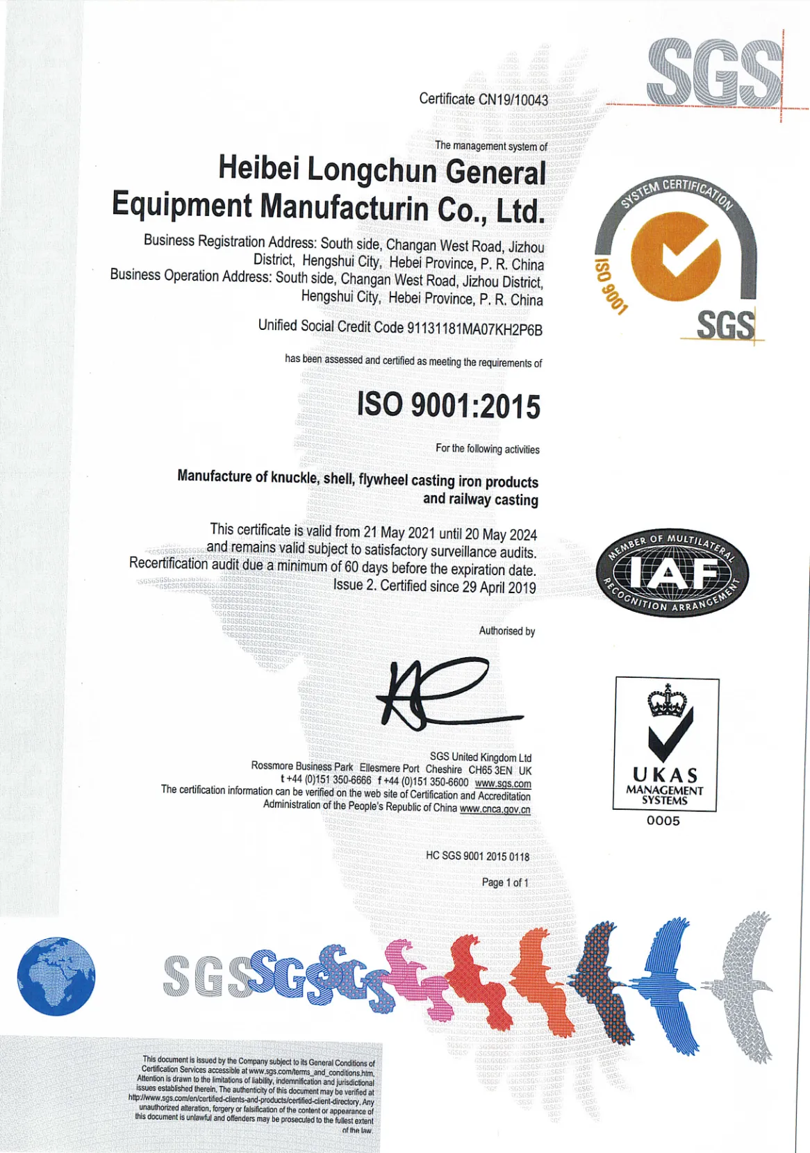 Hebei Longcun General Equipment Manufacturing Co., Ltd. ustanowiło i utrzymało swoją wiodącą pozycję na rynku dzięki ciągłej sile innowacji i stabilnej jakości produktów. Jej produkty są instalowane w pojazdach testowych z okazji 60. rocznicy parady wojskowej z okazji Dnia Narodowego oraz w ciągnikach salutacyjnych z okazji 70. rocznicy zwycięstwa w wojnie antyfaszystowskiej, stając się modelem wysokiej jakości części bezpieczeństwa. Zwrotnice samochodowe, koła zamachowe, zaciski hamulcowe, obudowy mechanizmu różnicowego, tarcze hamulcowe, hamulce i inne części bezpieczeństwa samochodowego tej firmy są dystrybuowane w Pekinie, Tianjin, Hebei, Szanghaju, Jiangsu, Zhejiang i innych prowincjach i miastach, stając się wyznaczonym dostawcą znanych krajowych firm samochodowych, takich jak Mercedes-Benz, BMW, Chrysler, GM, Volkswagen, Great Wall, BAIC, Changan, BYD i Chery. Produkowane przez firmę elementy kolei dużych prędkości, międzymiastowej kolei lekkiej, specjalnych podkładów metra i innych serii odlewów kolejowych cieszą się dużym powodzeniem w dużych miastach, takich jak Pekin-Tianjin-Hebei, Szanghaj, Changchun i Shenyang, a także są eksportowane do ponad tuzina krajów i regionów, takich jak Stany Zjednoczone, Rosja i Włochy.