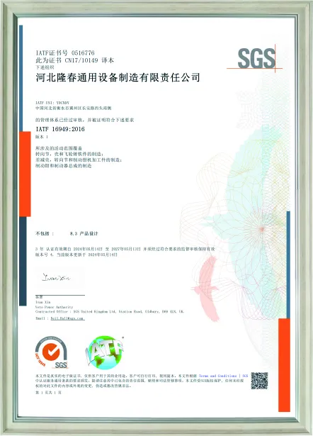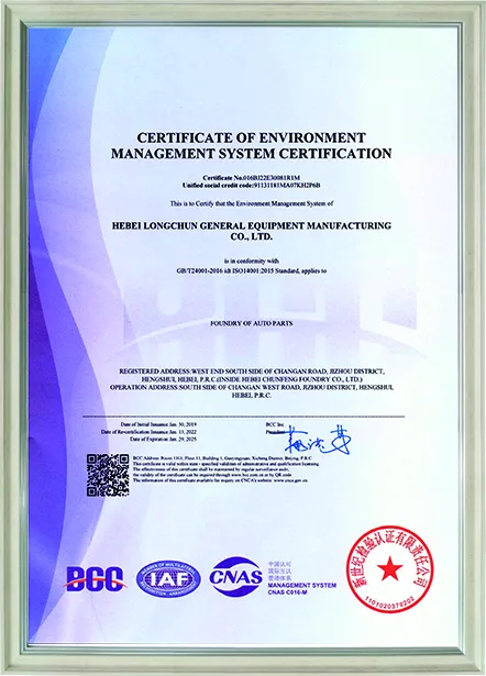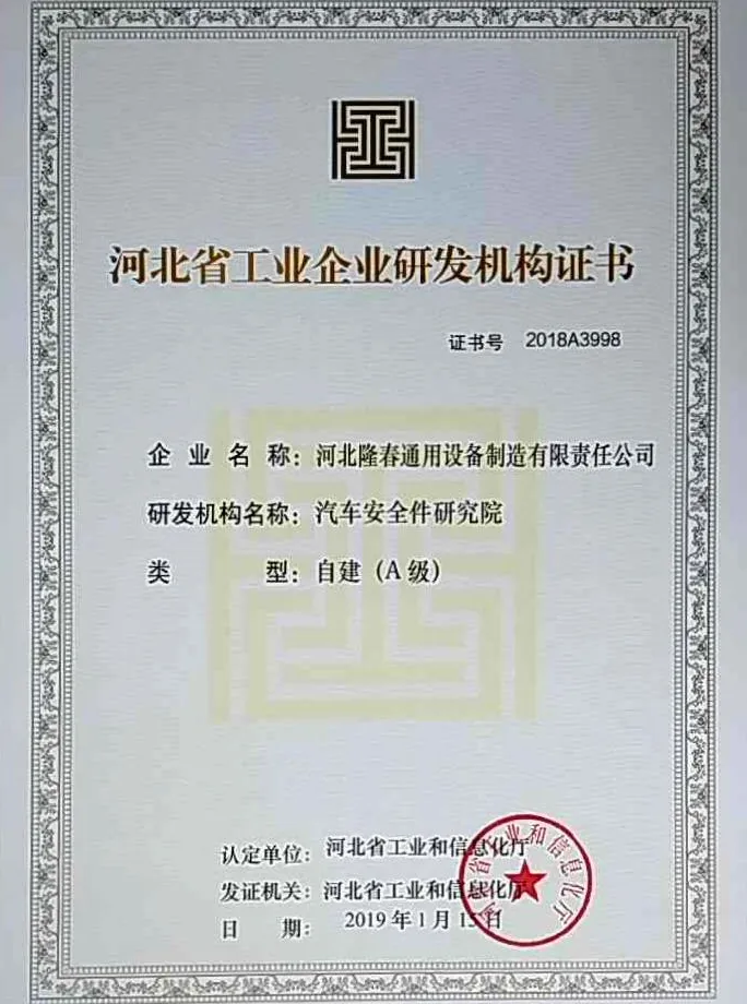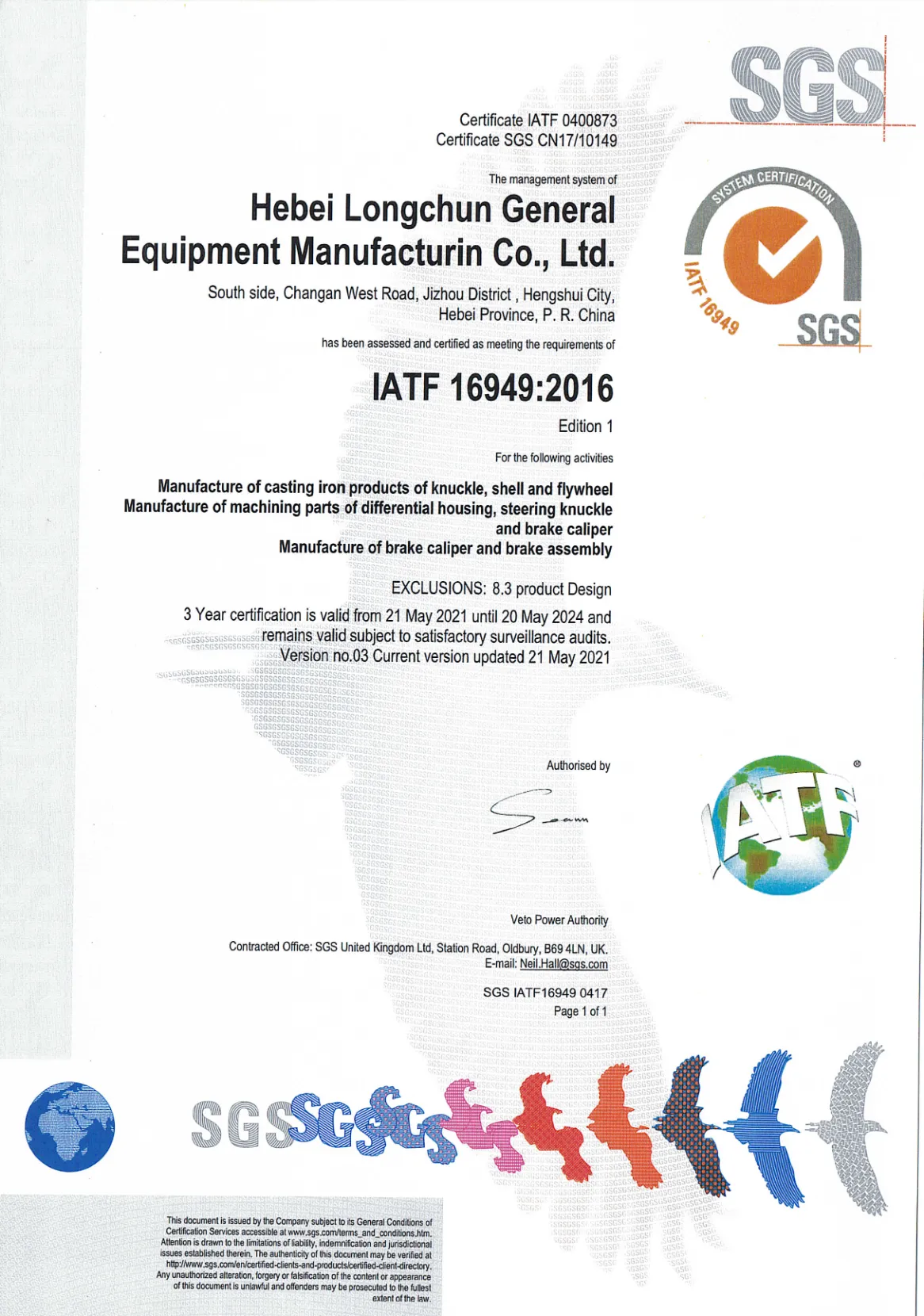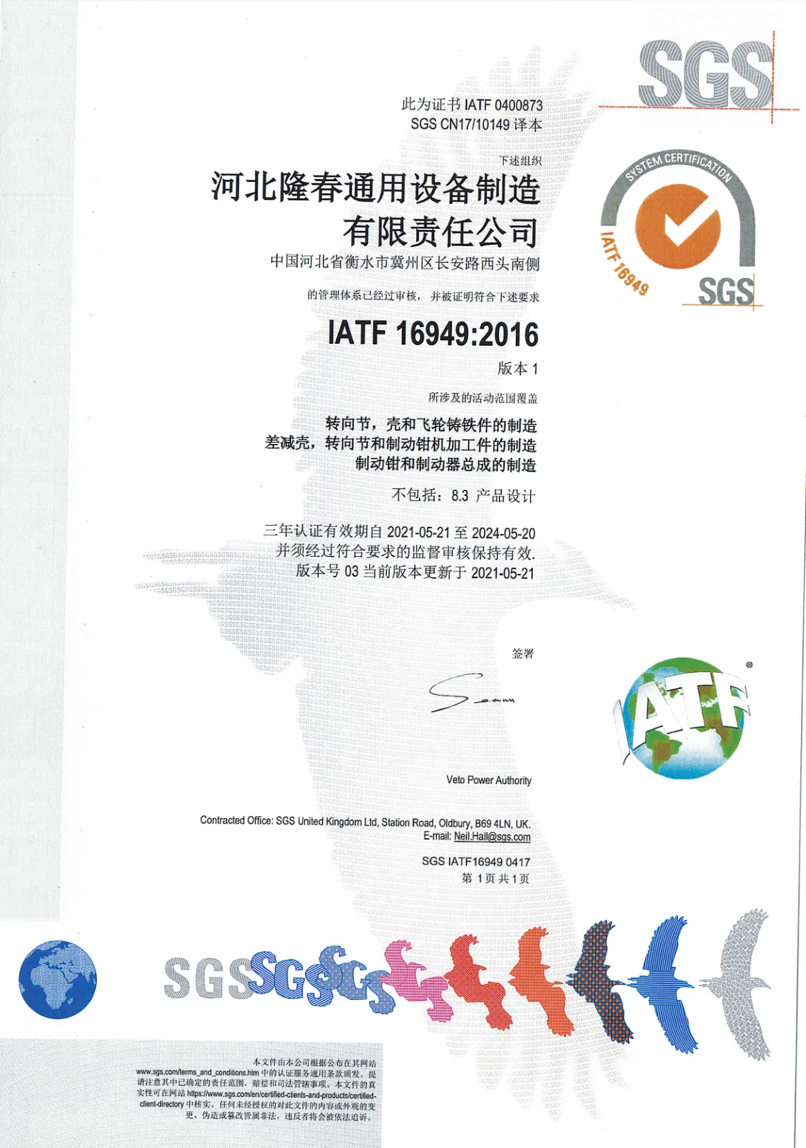 i przewodniczący rady nadzorczej Hebei Casting and Forging Industry Association. Firma została oceniona jako jedno ze 100 najlepszych przedsiębiorstw o wszechstronnym działaniu w chińskim przemyśle odlewniczym, wiodące przedsiębiorstwo w chińskim przemyśle odlewniczym i jedno z 1000 kluczowych przedsiębiorstw szkieletowych w chińskim przemyśle odlewniczym przez China Foundry Association przez cztery kolejne kadencje; została oceniona jako przedsiębiorstwo kredytowe poziomu AAA w chińskim przemyśle odlewniczym przez Ministerstwo Handlu i Komisję Nadzoru i Administracji Aktywami Państwowymi Rady Państwa; wyspecjalizowane i nowe przedsiębiorstwo; firma została oceniona jako krajowe przedsiębiorstwo ochrony środowiska poziomu A, przedsiębiorstwo demonstracyjne zielonego odlewnictwa w prowincji Hebei i wzorcowe przedsiębiorstwo ochrony środowiska w prowincji Hebei przez pięć kolejnych lat. Hebei Longchun General Equipment Manufacturing Co., Ltd. ma dwa oddziały, odlewanie części bezpieczeństwa samochodowego oraz przetwarzanie i montaż części samochodowych. Integruje odlewanie, przetwarzanie, inteligentny montaż i inne zalety. Firma jest liderem we wdrażaniu norm ISO/TS16949, systemu jakości ISO9001 i systemu zarządzania środowiskowego ISO14000.